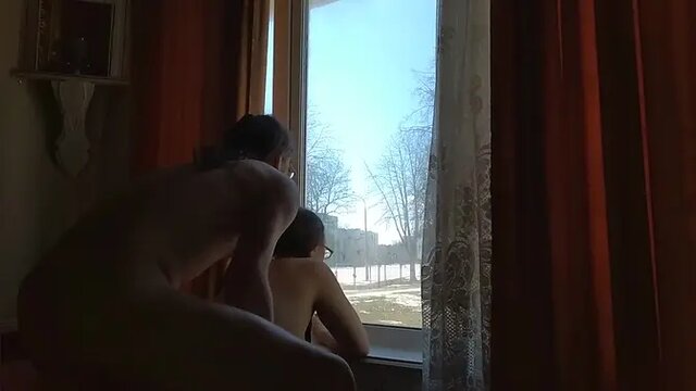 Curvy Helga Bosk risks it all by getting her big ass fucked bareback by the window. She cums hard and squirts all over. Passersby can't help but stare at her real orgasm.