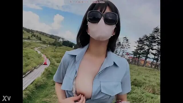 A sexy babe teases by unbuttoning her clothes and wetting her panties in the great outdoors. She fingers herself, moaning with pleasure, until she cums.