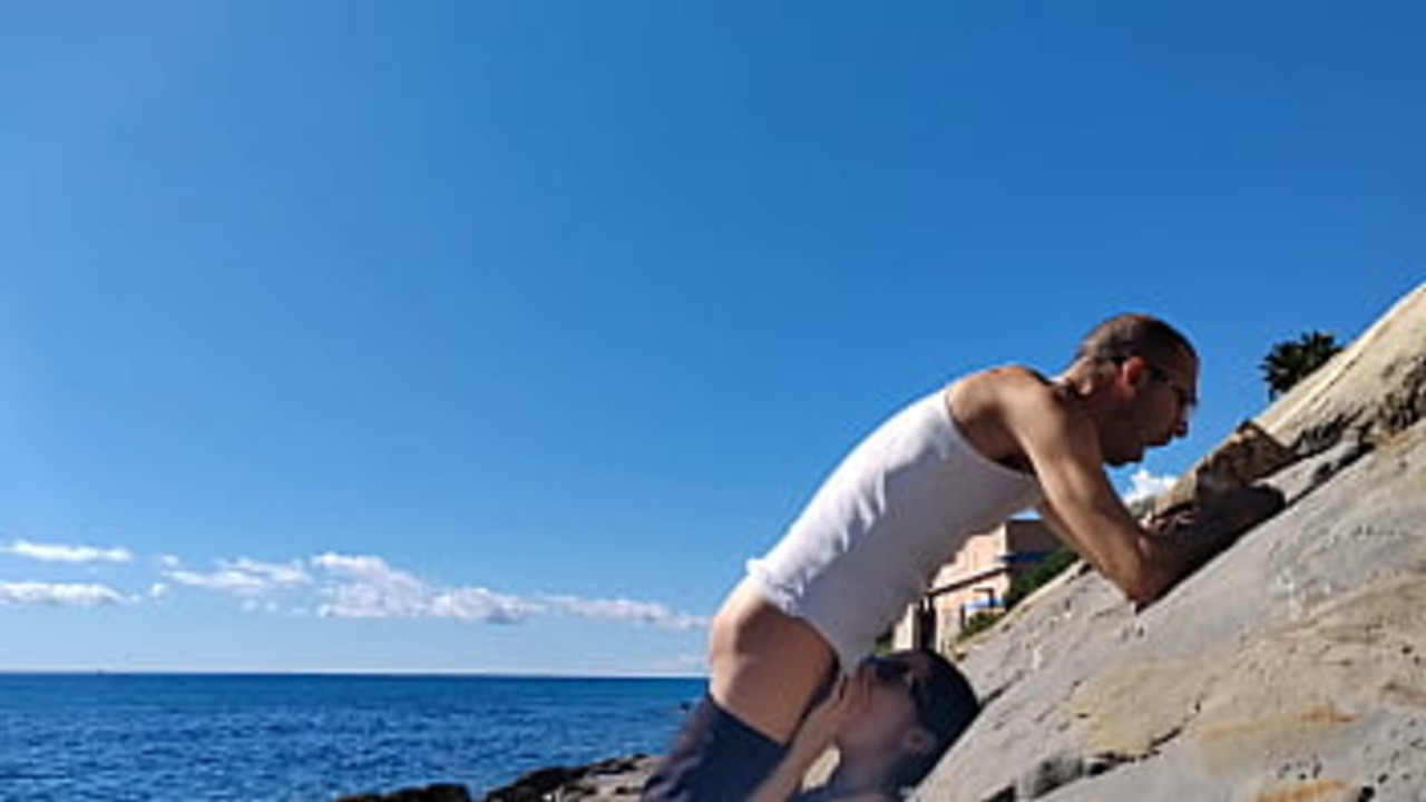 sexy wife sucks big cock on seashore before fucking him hard