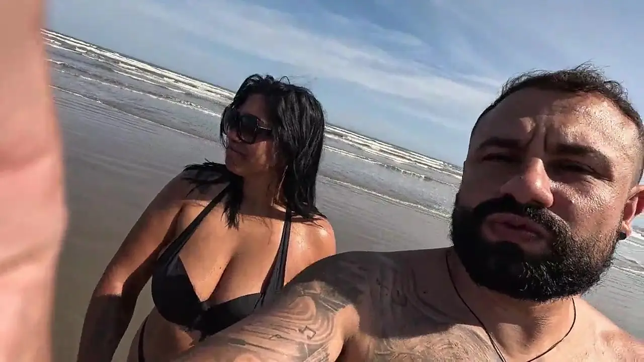 Beachside humiliation for hotwife with hairy pussy and natural tits