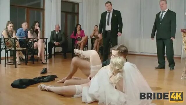 A blonde bride4k in a wedding dress is caught by her cuckold husband watching her cheat on him. She straddles the lucky stranger and grinds on his dong in public, all while her husband watches in shock.