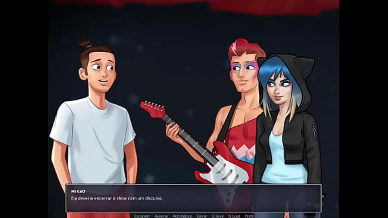 In this hot scene from Summertime Saga Episode 103, a sultry milf and black woman with big boobs is caught giving a deepthroat blowjob in front of her students. This public humiliation turns her on, and she humps his cock hard after. The 2D animation brings the cartoon world to life with its sensual portrayal of this adult visual novel scene.