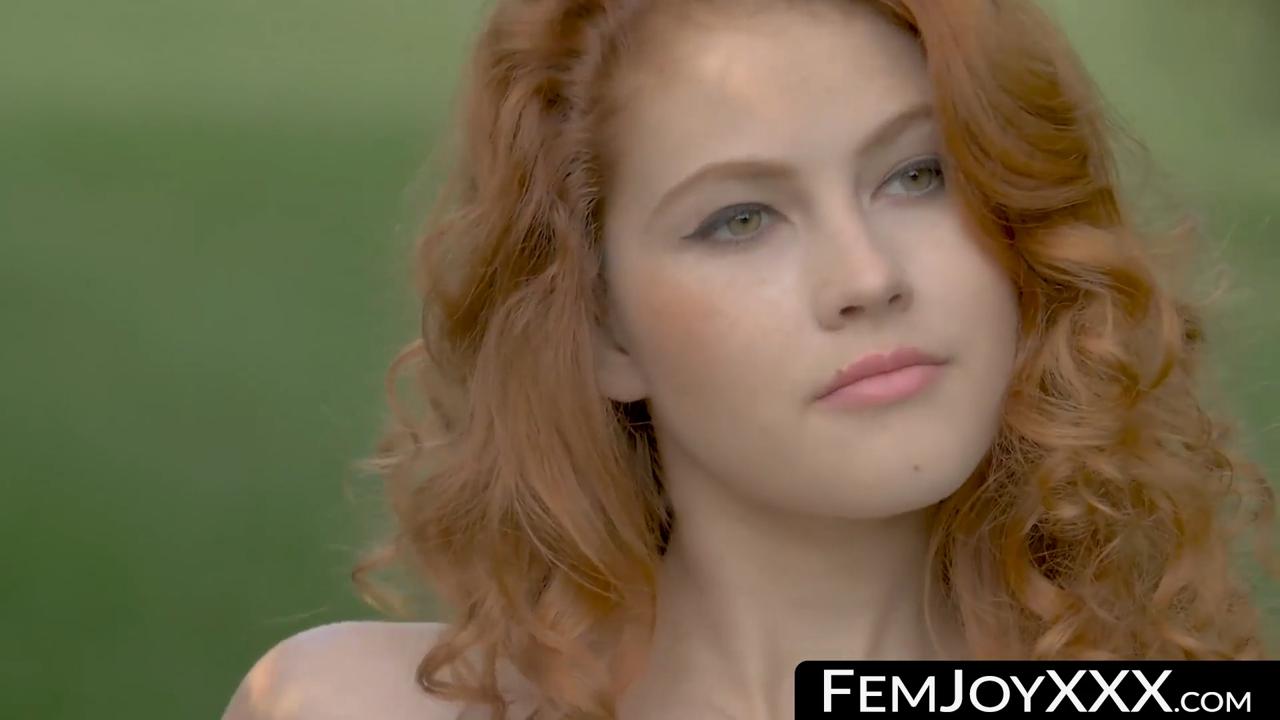 Sensual solo scene featuring a gorgeous redhead teen. She showcases her flawless body and shaven pussy in close-up shots while teasing with nature's backdrop. The outdoor setting highlights her natural beauty as she teases the camera.