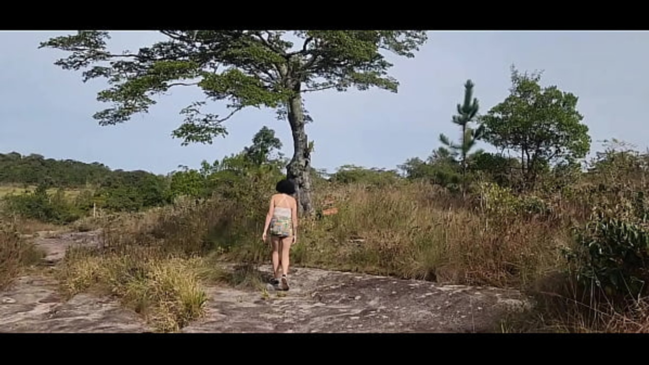 Trilha, a heavily tattooed and sexy Latina with a perfect pair of tits, shows off her big dong to the public. She gets a blowjob in an outdoor setting, with her blue eyes filled with desire. The dirty and sensual scene ends with a deep throat cumming.