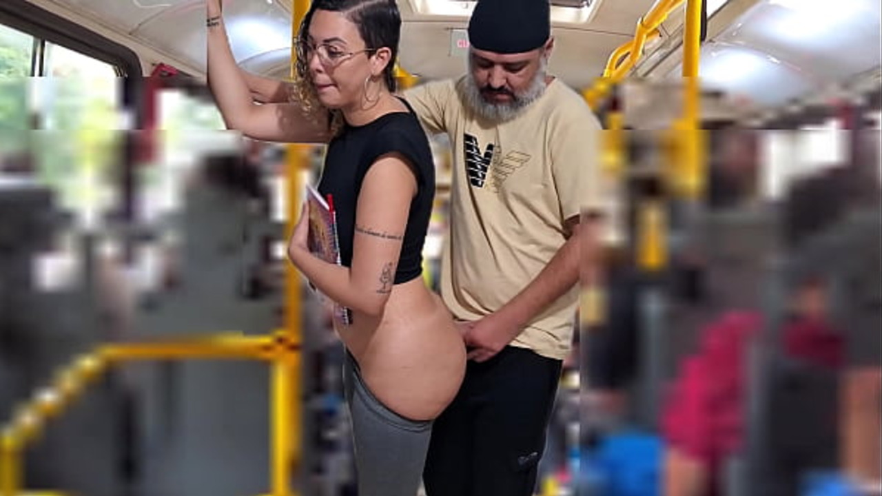 A slutty student gets caught eating pussy on the public bus by a mature man. He takes advantage of the situation and gives her a messy cumshot all over her face. The mature man then uses his discovery as blackmail material for the young woman.