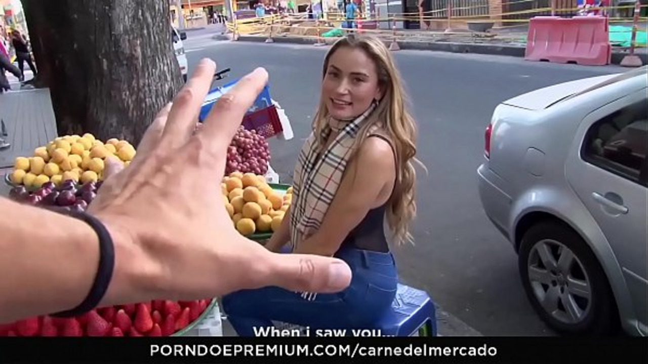 A sexy Latina babe in natural attire receives picked up by a random guy in the market. She lures him to a secluded area and gives him a handjob before sucking his cock. He pounds her tight ass, making her moan loudly before giving her a facial cumshot.