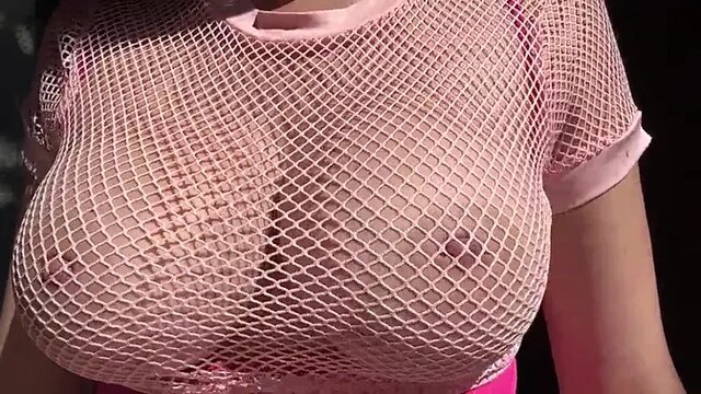 Italian MILF's giant bouncing tits outside