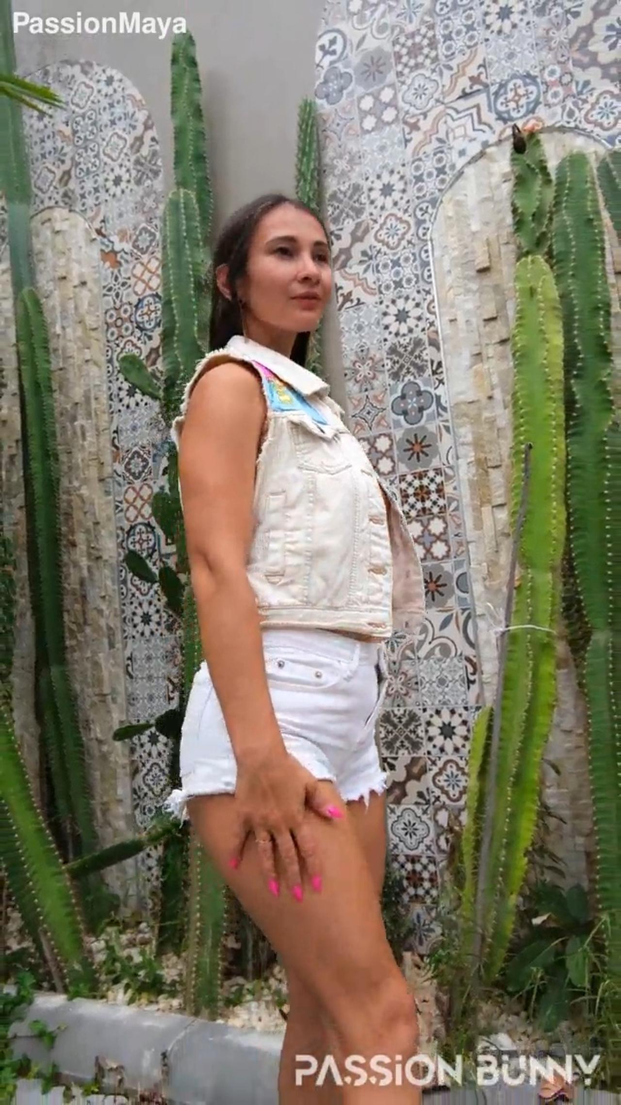MayaRush - Pretty girl next door strips and flashes in hot white jeans