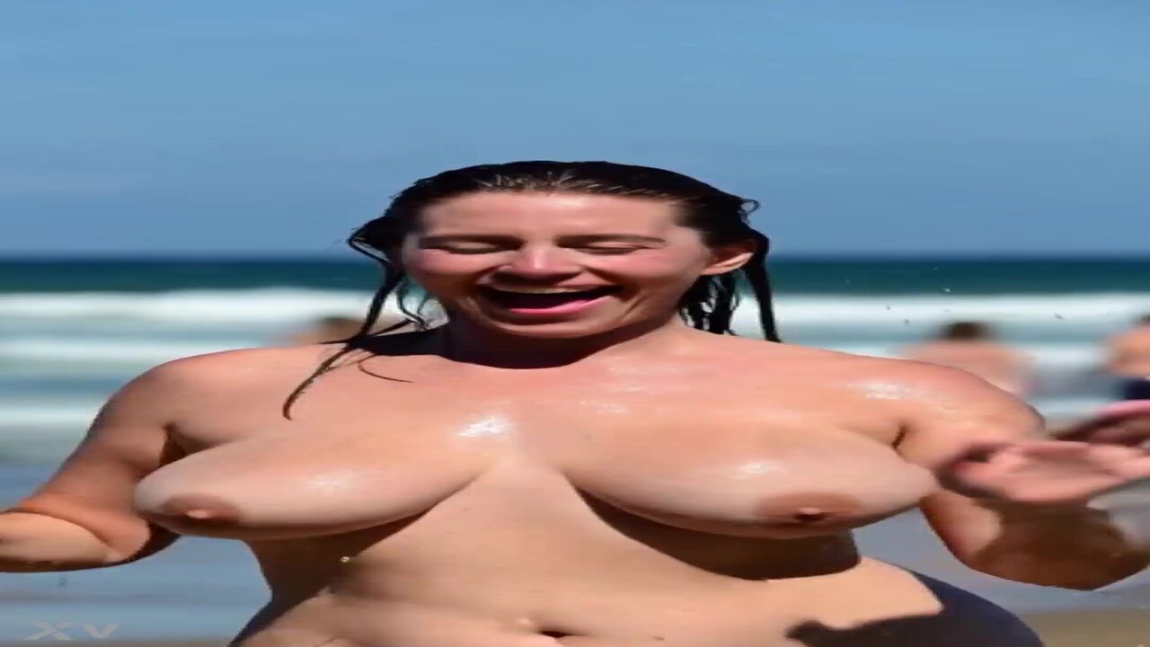YOUNG GFs show off their huge natural breasts while dancing topless at the beach