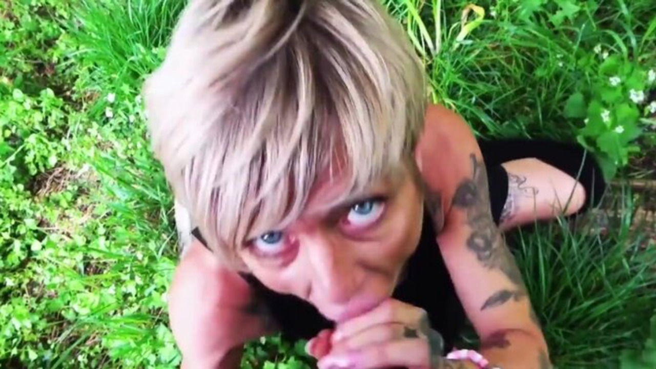This German MILF gives an enthusiastic blowjob to her lucky hubby before he pounds her rough and hard in doggystyle. She moans and whimpers as they get wild on their lawn. He finishes by shooting his load over her bare belly.